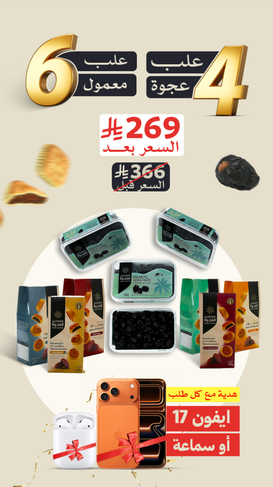 - 📦 محتويات العرض : 6 علب معمول فاخر (200 جم للعلبة) بنكهات متعددة